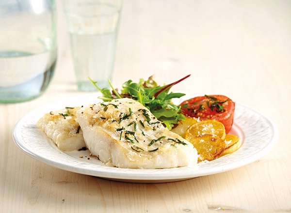 Het recept van deze week is: Gebakken kabeljauw, bedekt met knoflook en bieslook Het visvlees van de kabeljauw is stevig maar laat makkelijk los als de vis gaar is. De smaak van kabeljauw is fijn en eindeloos te combineren. Dit hoofdgerecht is voor 4 personen en klaar te maken binnen 20 minuten.