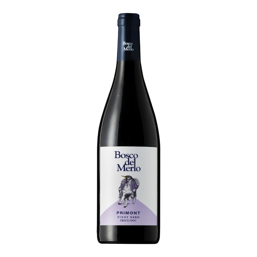 De Pinot Nero Primont van Bosco del Merlo komt uit de Bosco del Merlo wijngaarden aan de voet van de Friulaanse Dolomieten, op een hoogte van 270 meter. De naam ‘Primont’ eert Primo Carnera, een bokser uit Sequals die bekend staat als ‘de lopende berg’; zoals Carnera altijd zei, ‘De stoten komen uit de benen,’ zo bepaalt ook bij deze wijn het terroir de kracht en uniciteit. De bodems, rijk aan kiezel, en de aanzienlijke temperatuurverschillen creëren een ideaal microklimaat voor de optimale rijping van de druiven.