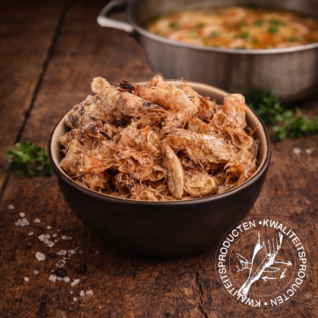 Garnalenpulp zijn de lege schillen van de Hollandse garnalen. Deze schillen zijn uitstekend om te gebruiken bij het bereiden van een bisque of vissoep.