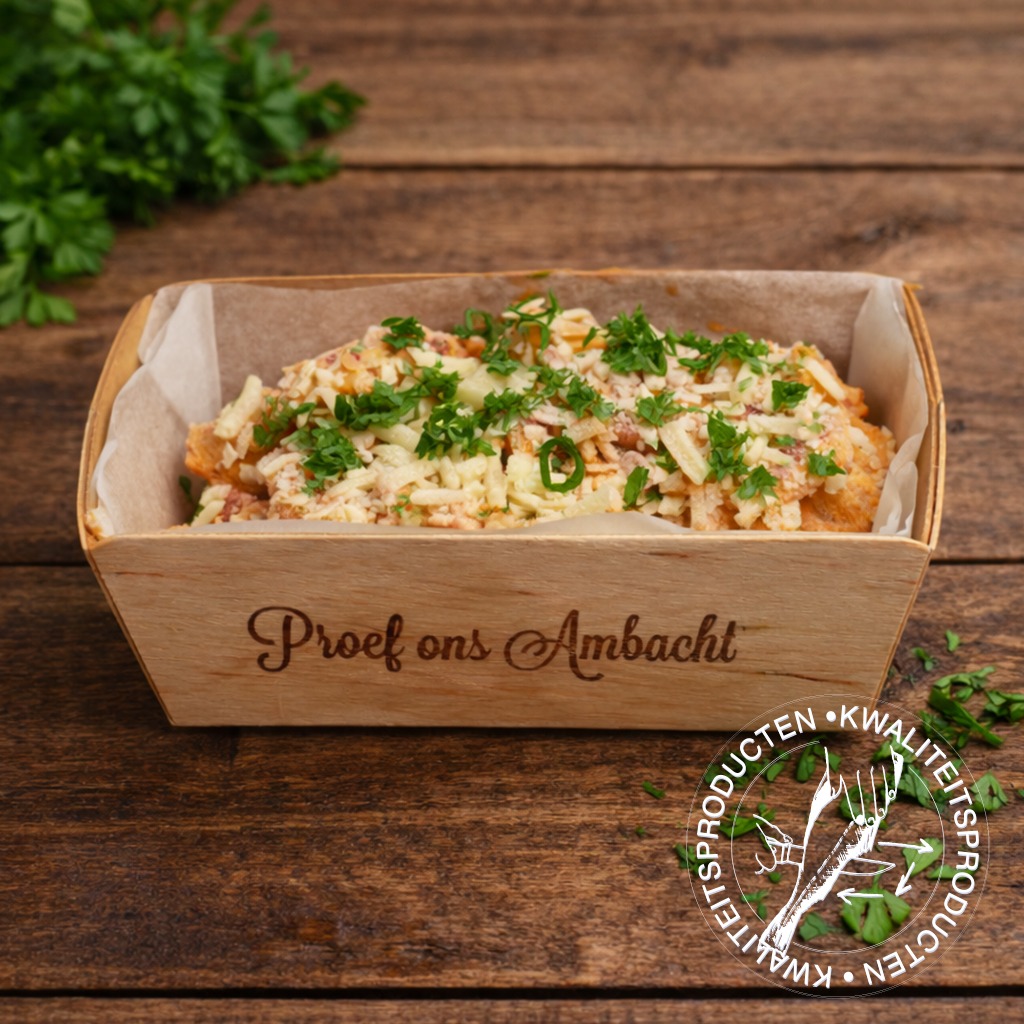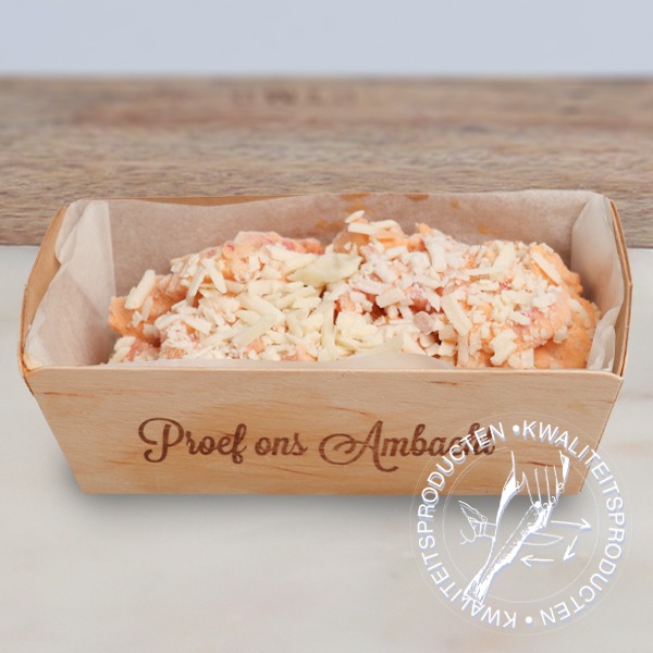 Heerlijke huisgemaakte krabdiablo’s (1st). Deze smakelijke vismaaltijd heeft een licht pittige nasmaak. Even opwarmen in de oven en genieten maar.