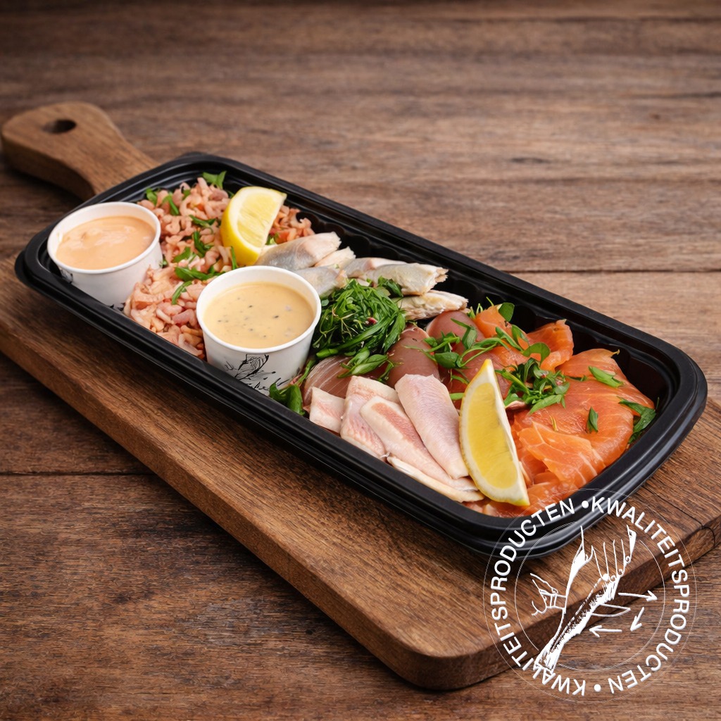 Ontdek waarom deze luxe borrelplank één van onze absolute bestsellers is! Speciaal samengesteld om van elke borrel een feestje te maken. Deze royale plank is rijkelijk gevuld met een selectie van onze fijnste delicatessen: gerookte zalm, paling, tonijn, makreel, Hollandse garnalen, salade en saus.