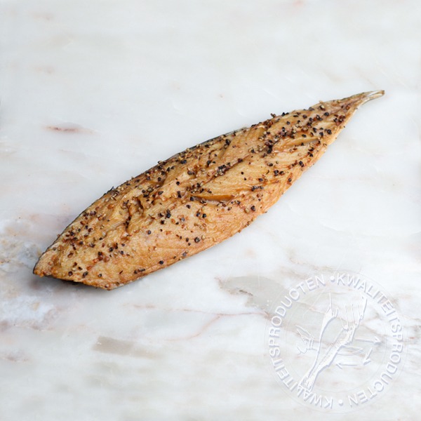 Ingrediënten: makreel (Scomber scombrus; vangst FAO27), zout, peper, rook
