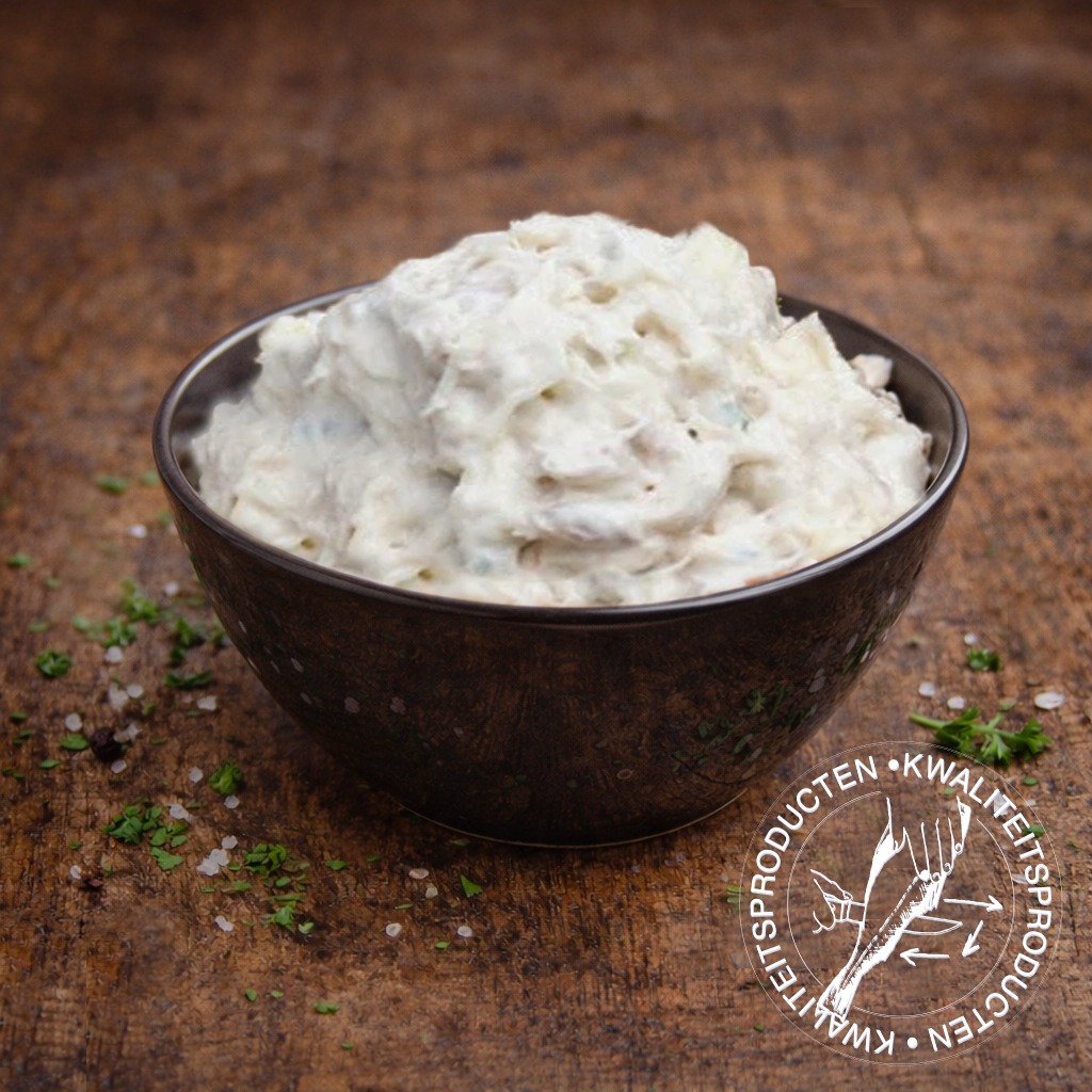Huisgemaakte makreelsalade met de volle smaak van gerookte makreel, verfijnd met frisse appel en verse bieslook. Romig en vol van smaak.