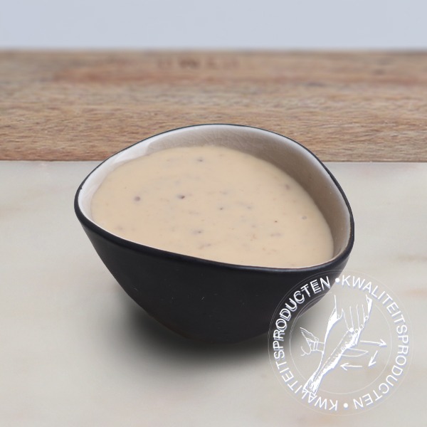 Ingrediënten: Sojaolie, water, suiker, sojasaus (water, sojabonen, tarwe, zout), 6% sesamzaad, azijn, 2.5% sesamolie, eigeel, zout, gistextract, zuurteregelaar (E330), aroma, stabilisator (E415), conserveermiddel (E202), antioxidant (E385), specerijen (mosterd)