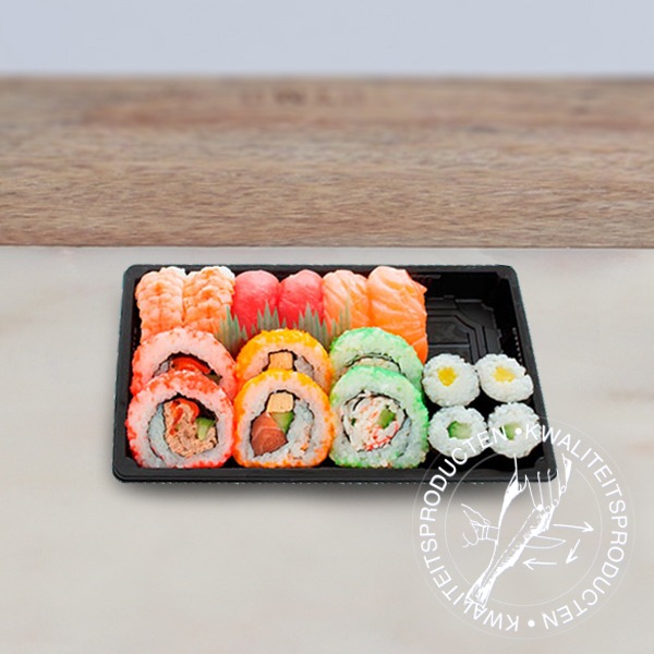 Sushi set van 16 stuks, dagvers bereid met de beste ingrediënten. Geniet van een smaakvolle variatie: nigiri’s met zalm, tonijn en garnaal, drie soorten uramaki en twee soorten hosomaki.