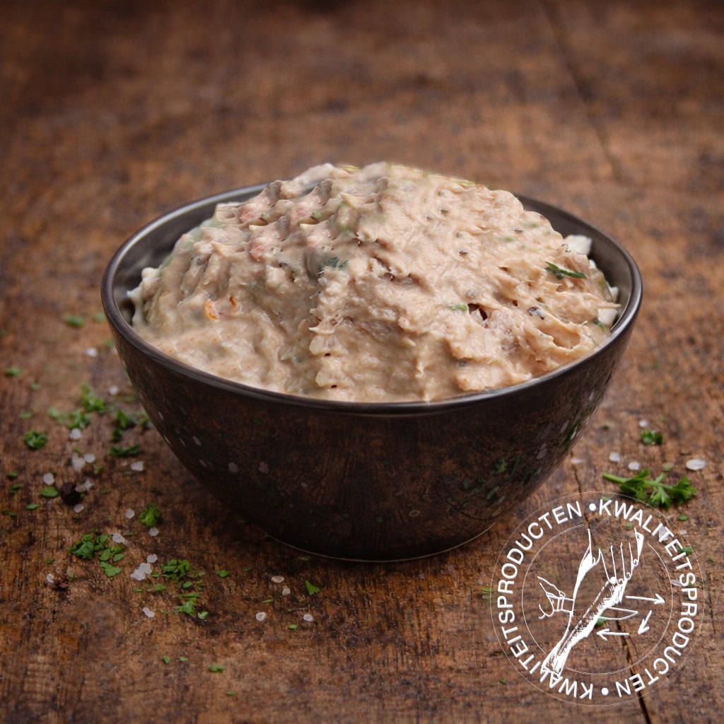 Ingrediënten: 50% tonijn (Skipjack; Katsuwonus pelamis, vangst Stille Oceaan), zonnebloemolie, zout) l mayonaise (plantaardige olie (soja), scharreleigeel, water, mosterd (water, mosterdzaad, azijn, zout, specerijen), azijn, suiker, zout, conserveermiddel (kaliumsorbaat), aroma, verdikkingsmiddel (xantaangom), antioxidant (calciumdinatrium EDTA) l basissaus (water, plantaardige olie (raapzaad), gemodificeerd maiszetmeel, glucose fructosestroop, scharrel-eigeel, gemodificeerd zetmeel, zout, voedingszuren (azijnzuur, citroenzuur), verdikkingsmiddel (guarpitmeel), conserveermiddel (kalium-sorbaat), zoetstof (sacharinen), calciumdinatrium EDTA) l zoetzuur (witte wijnazijn, water, suiker, koriander, steranijs) l gedroogde tomaat (tomaten, zout, kruiden, citroenzuur, koolzaadolie) l tomatenpuree l rode ui l paprika l appel l augurk (azijn, zout, mosterdzaad, sacharine, aroma, riboflavine) l zwarte olijven (onbehandelde zwarte olijven in pekel, zout (NaCl), plantaardige vetten 4.0%, E202, E200, E509) l kappertjes (kappertjes, zout, water, witte wijnazijn) l peterselie l citroensap l paprikapoeder l zwarte peper