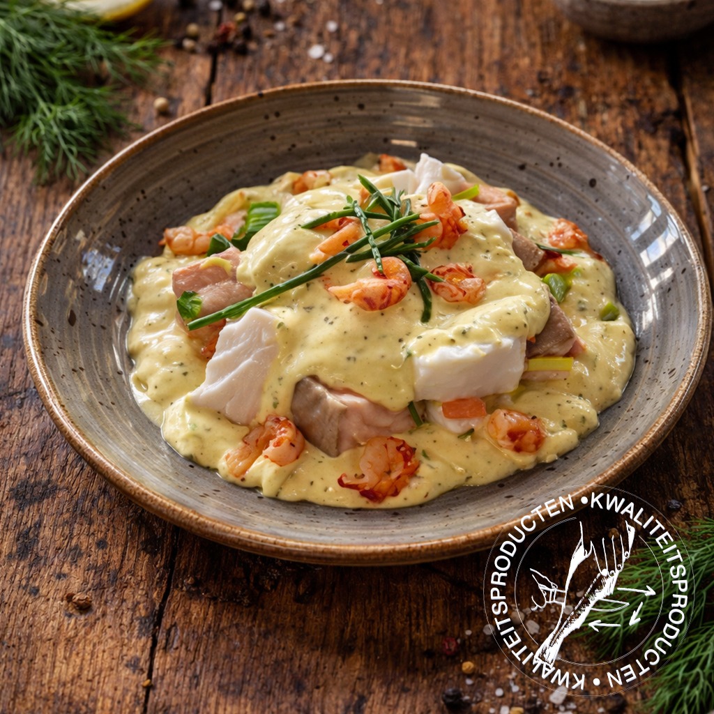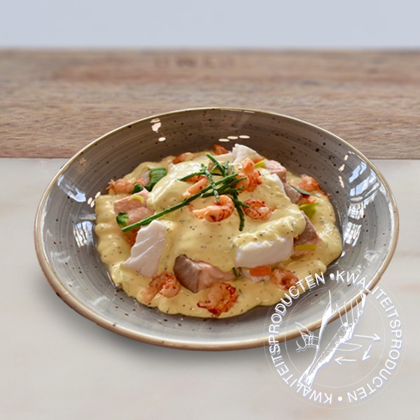 Deze huisgemaakte vispotjes zijn heerlijk uit de oven of magnetron. Rijkelijk gevuld met gemengde vis en garnalen. Keuze uit verschillende smakelijke sauzen (Hollandaise,- witte wijn, mosterd dille of vissaus).