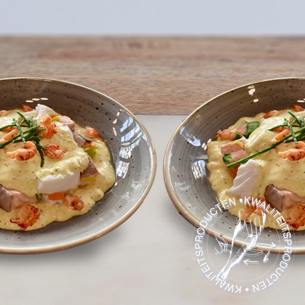 Deze huisgemaakte vispotjes zijn heerlijk uit de oven of magnetron. Rijkelijk gevuld met gemengde vis en garnalen. Keuze uit verschillende smakelijke sauzen (Hollandaise,- witte wijn, mosterd dille of vissaus).