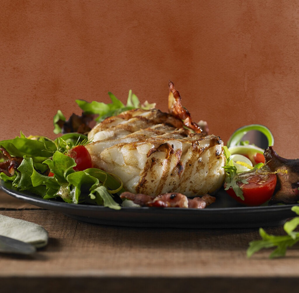 Salade met gegrilde lengfilet, spekjes en citroendressing